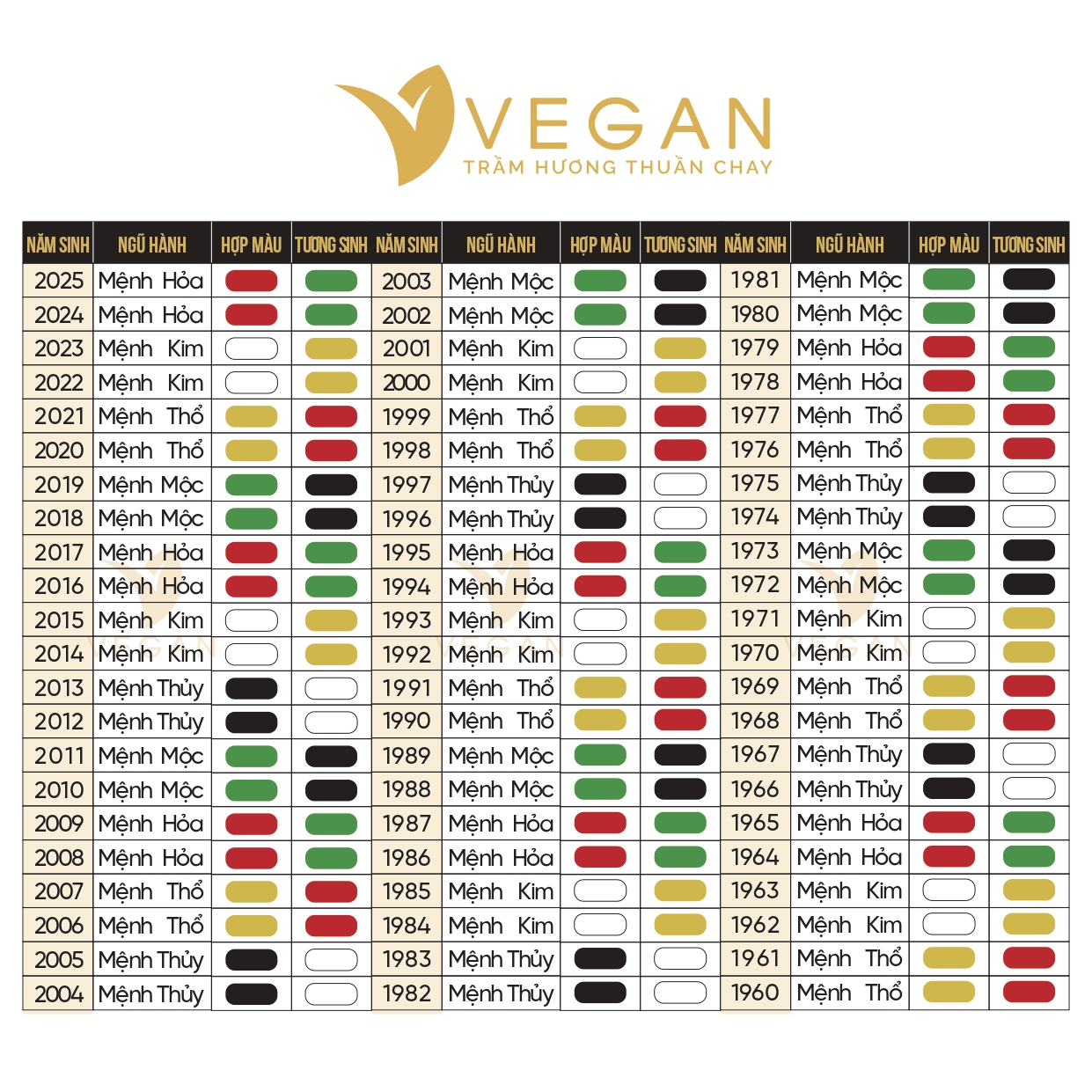 Bảng màu theo mệnh VEGAN Trầm Hương